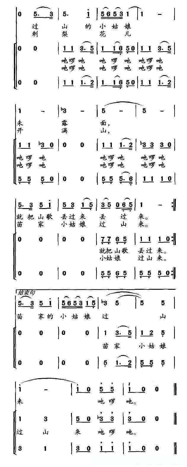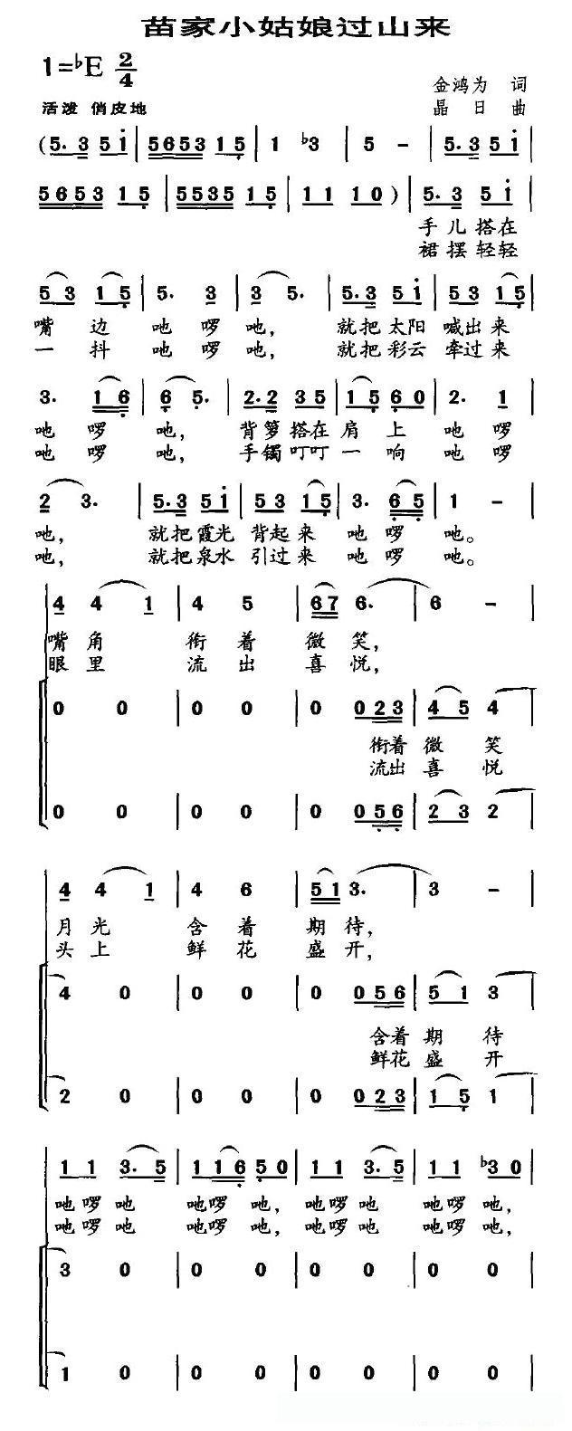 苗家小姑娘过山来的简谱歌词苗家小姑娘过山来的简谱歌词