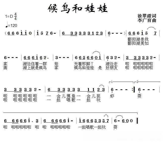 候鸟和娃娃的简谱歌词