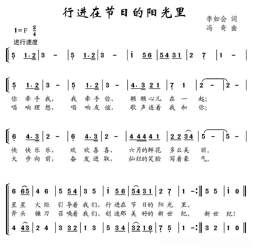 行进在节日的阳光里的简谱歌词