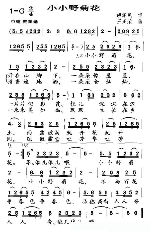 小小野菊花(胡泽民词 王正荣曲)的简谱歌词