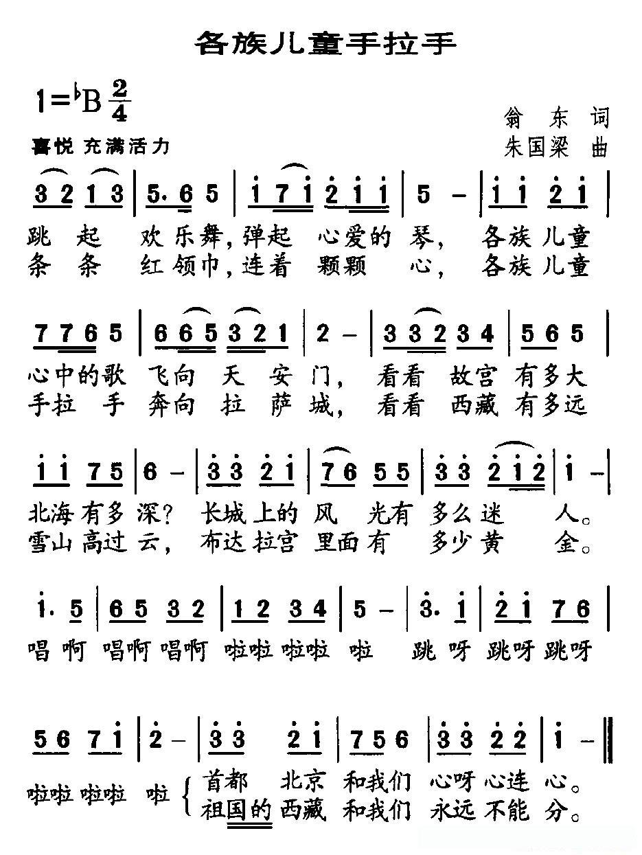 各族儿童手拉手的简谱歌词
