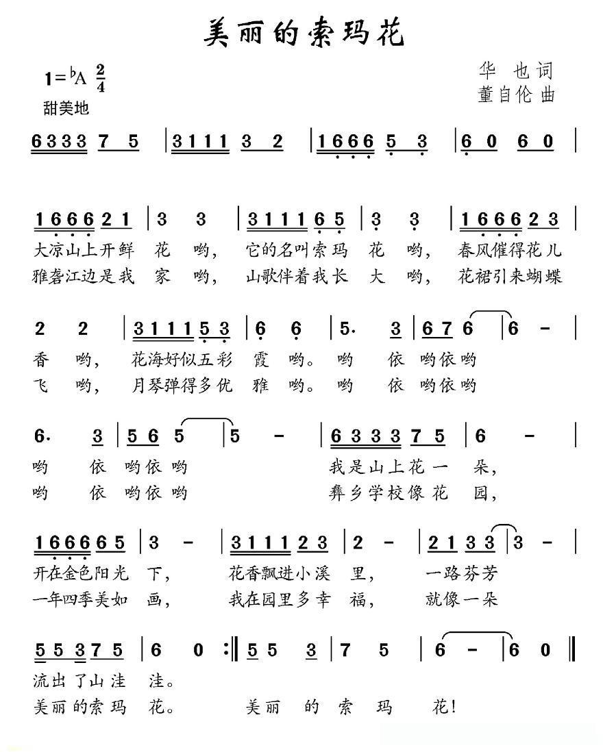 美丽的索玛花的简谱歌词