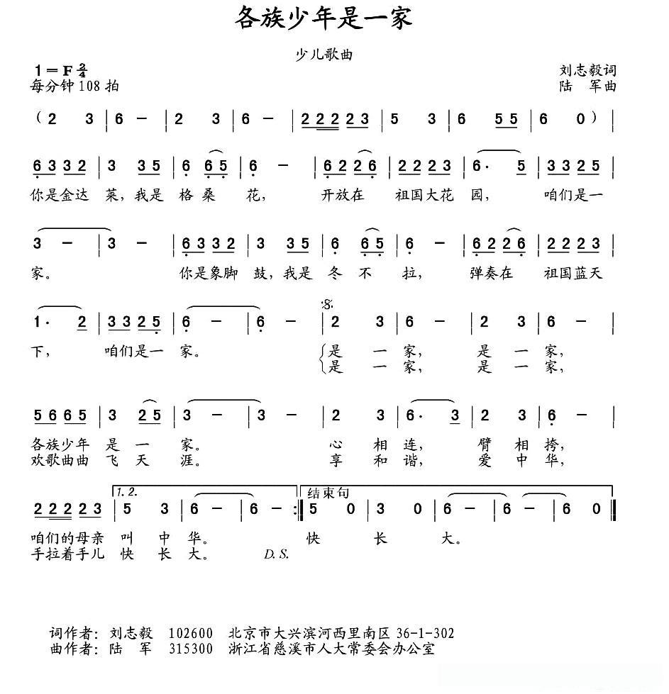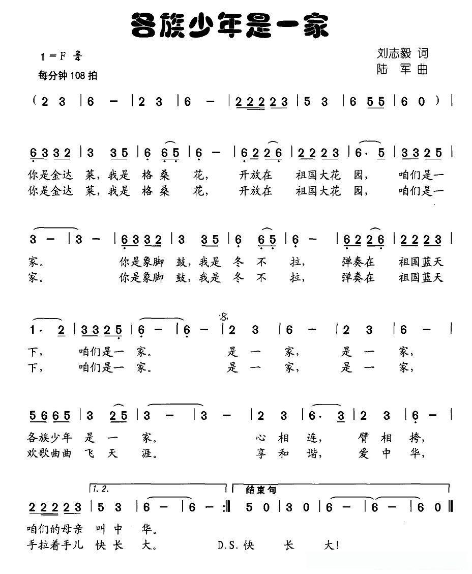 各族少年是一家(刘志毅词 陆军曲)的简谱歌词各族少年是一家(刘志毅词 陆军曲)的简谱歌词各族少年是一家(刘志毅词 陆军曲)的简谱歌词