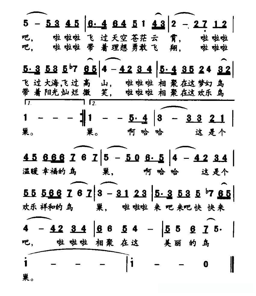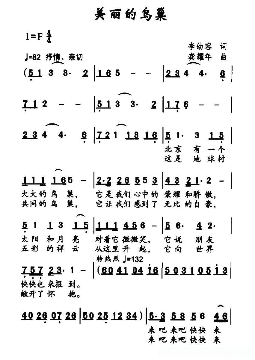 美丽的鸟巢的简谱歌词美丽的鸟巢的简谱歌词