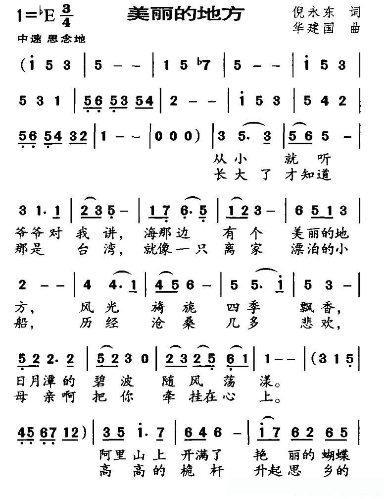 美丽的地方(倪永东词 华建国曲)的简谱歌词美丽的地方(倪永东词 华建国曲)的简谱歌词