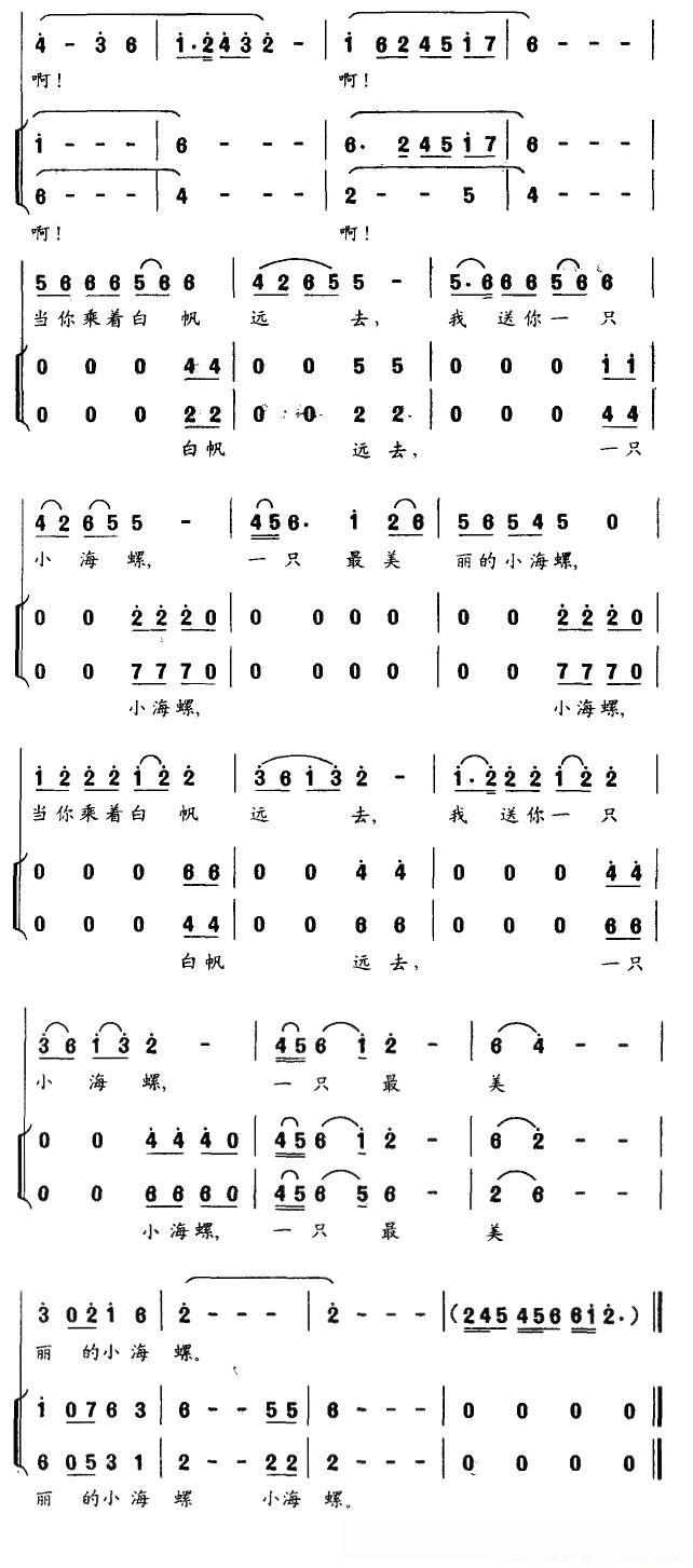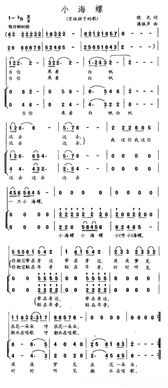 小海螺(京族儿歌、合唱)的简谱歌词小海螺(京族儿歌、合唱)的简谱歌词