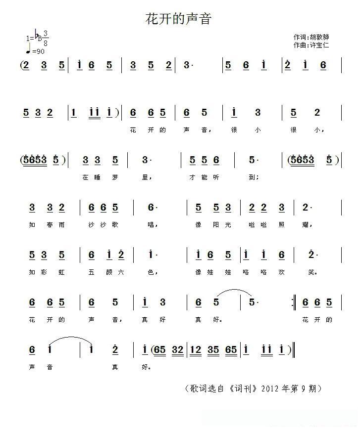 花开的声音(胡敦骅词 许宝仁曲)的简谱歌词