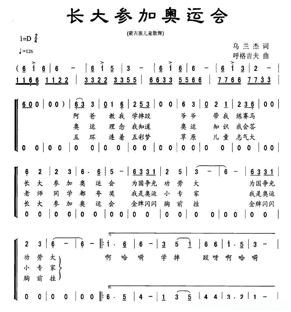 长大参加奥运会(蒙古族儿童歌舞)的简谱歌词长大参加奥运会(蒙古族儿童歌舞)的简谱歌词