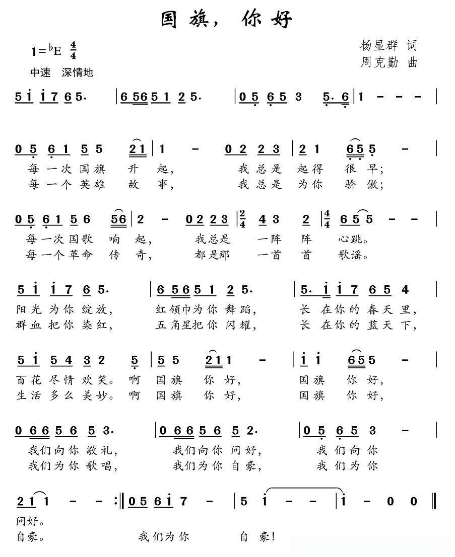 国旗,你好(杨显群词 周克勤曲)的简谱歌词