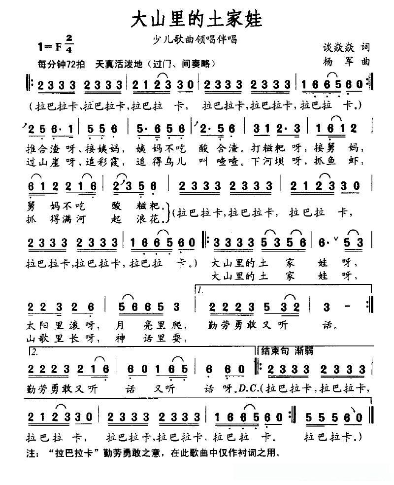 大山里的土家娃的简谱歌词