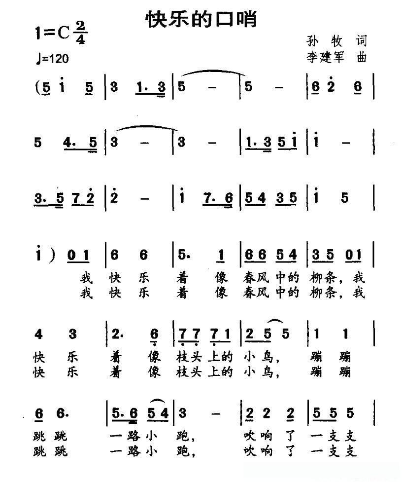 快乐的口哨的简谱歌词快乐的口哨的简谱歌词