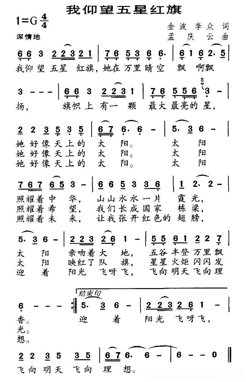 我仰望五星红旗(金波 李众词 孟庆云曲)的简谱歌词