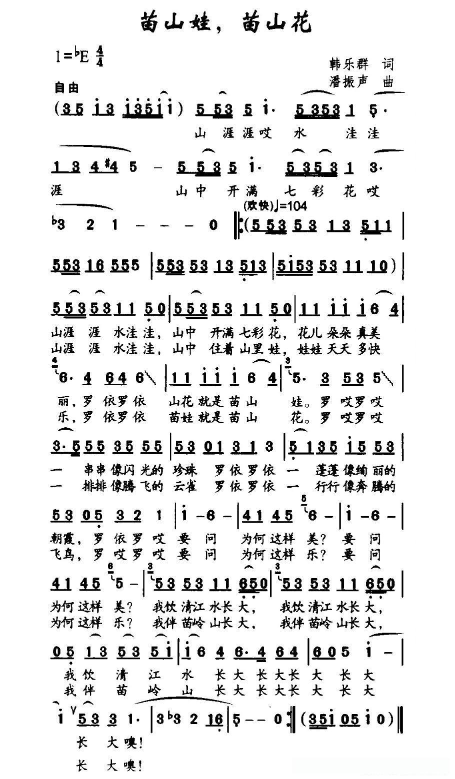 苗山娃,苗山花的简谱歌词