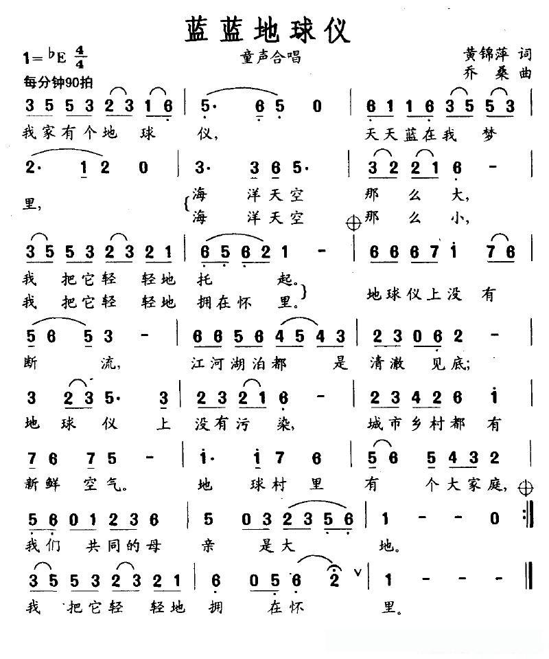 蓝蓝地球仪的简谱歌词