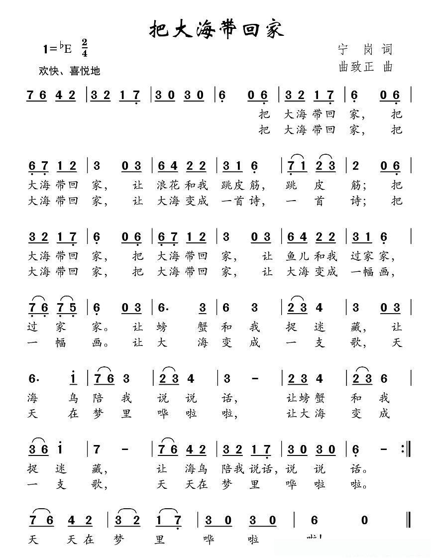 把大海带回家(宁岗词 曲致正曲)的简谱歌词