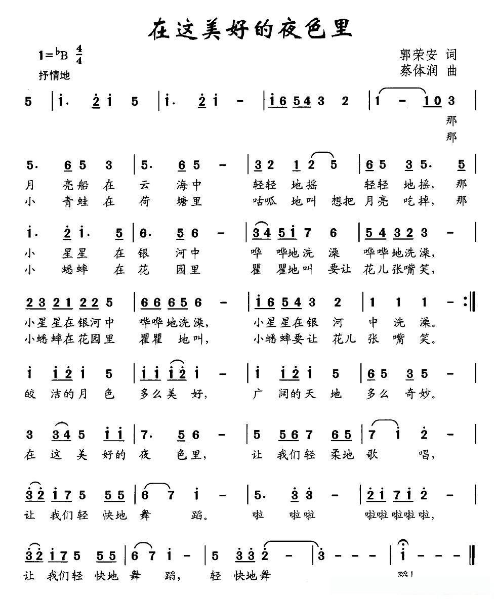 在这美好的夜色里(郭荣安词 蔡体润曲)的简谱歌词