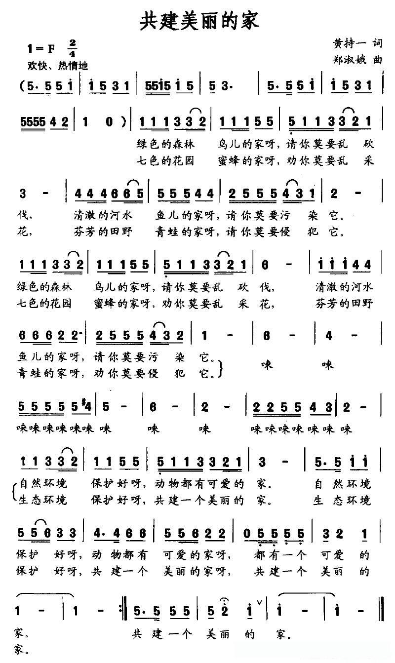 共建美丽的家(黄持一词 郑淑娥曲)的简谱歌词