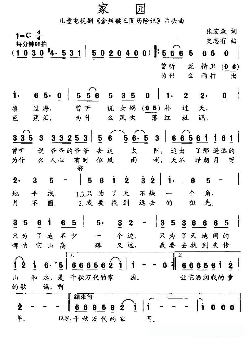 家园(儿童电视剧《金丝猴王国历险记》片头曲)的简谱歌词