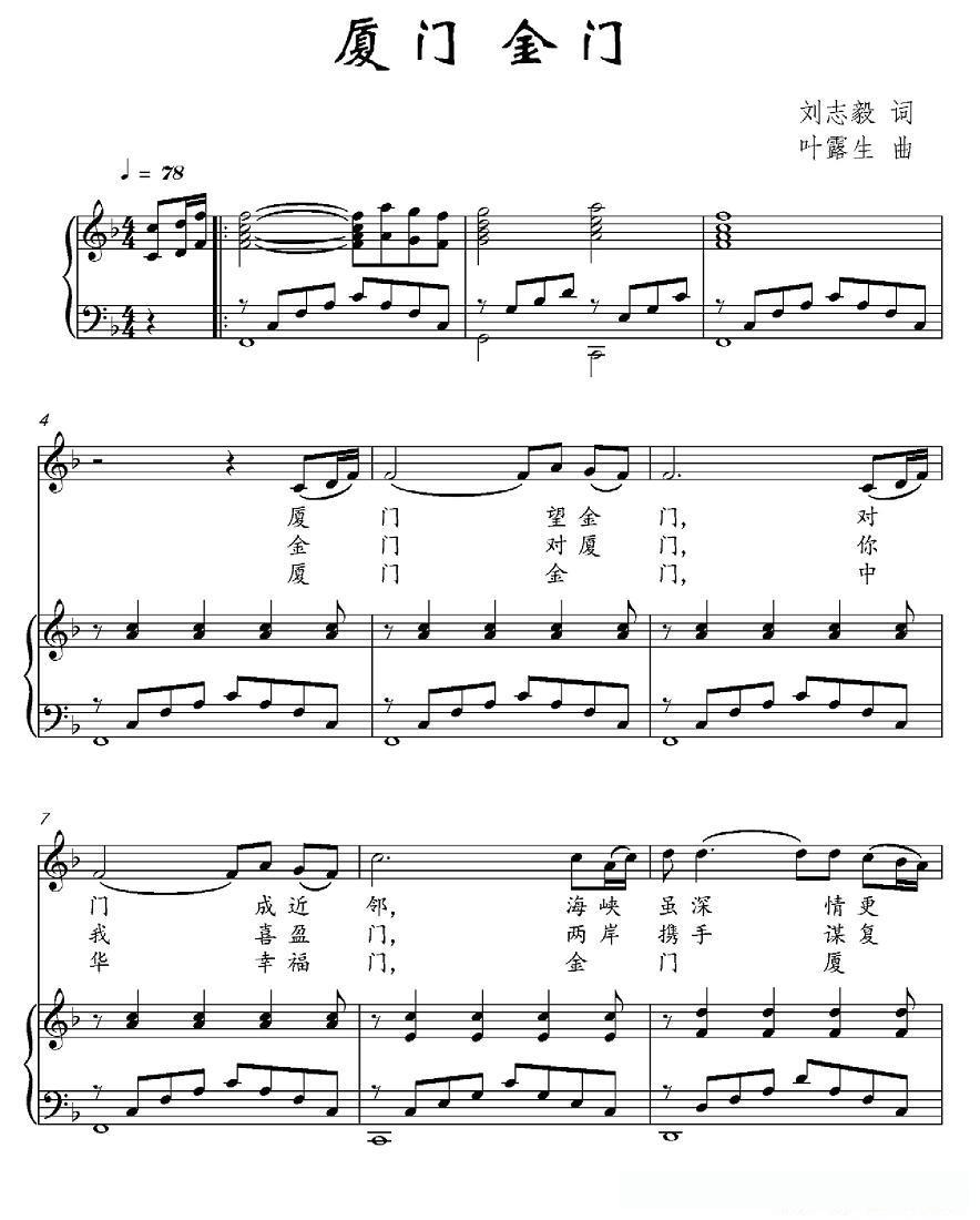 厦门 金门(刘志毅词 叶露生曲、正谱)的简谱歌词厦门 金门(刘志毅词 叶露生曲、正谱)的简谱歌词