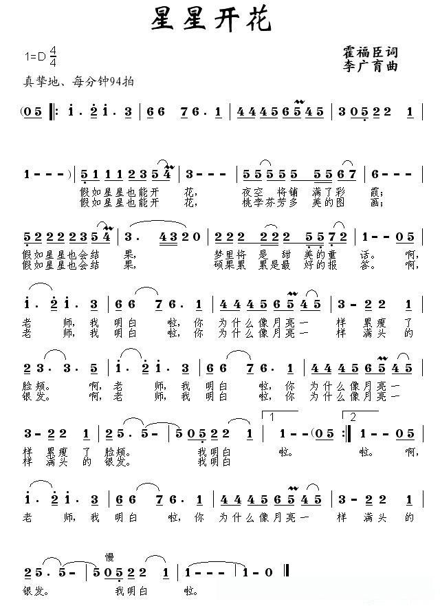 星星开花(霍福臣词 李广育曲)的简谱歌词