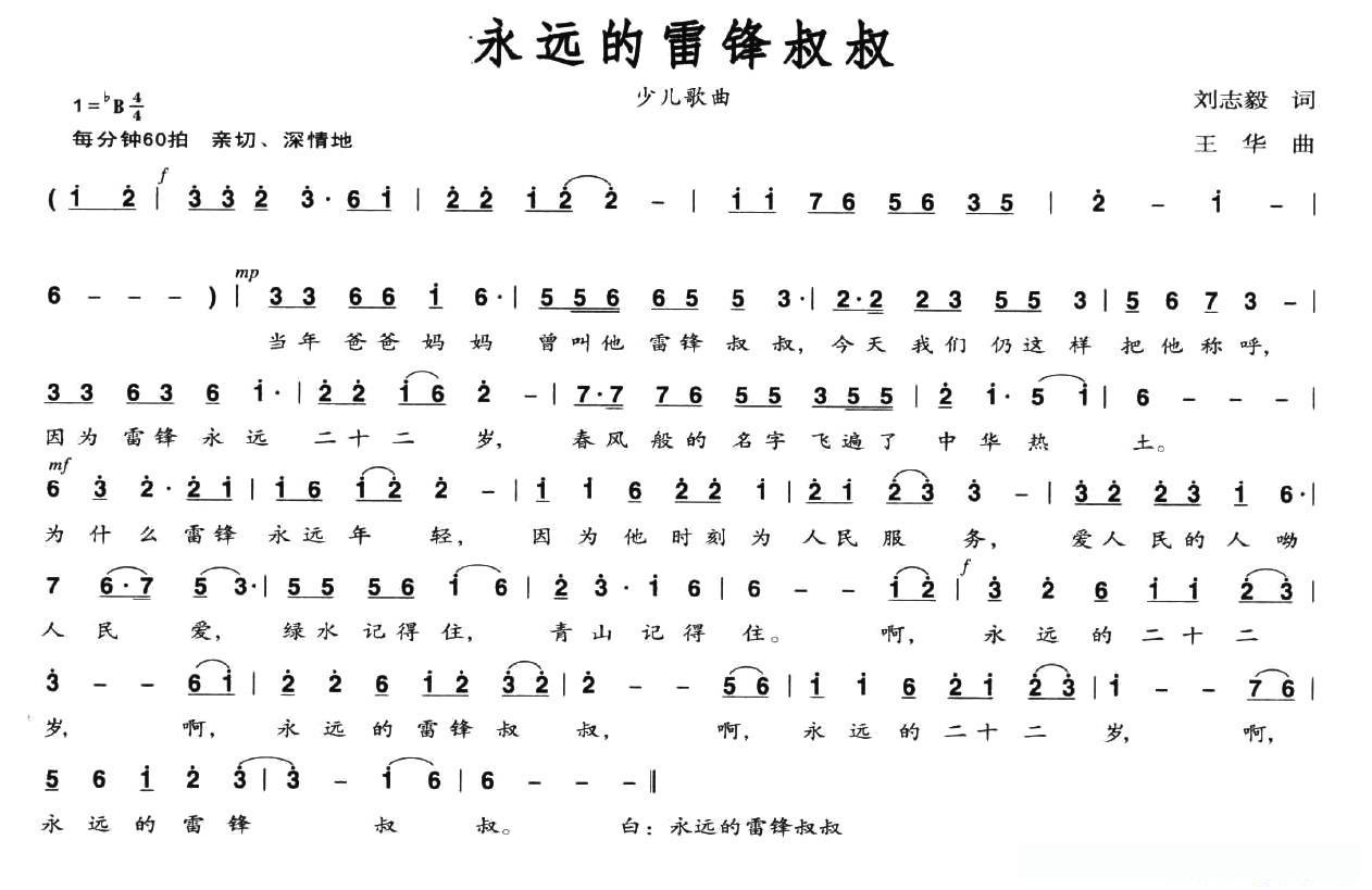 永远的雷锋叔叔(刘志毅词 王华曲)的简谱歌词