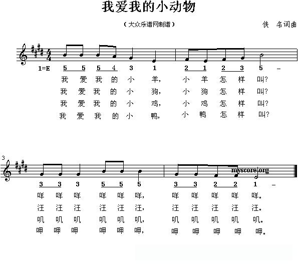 我爱我的小动物(线的简谱混排版)的简谱歌词