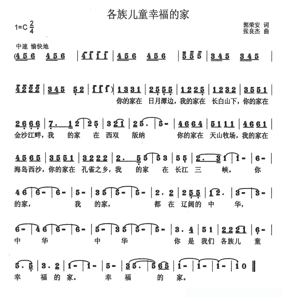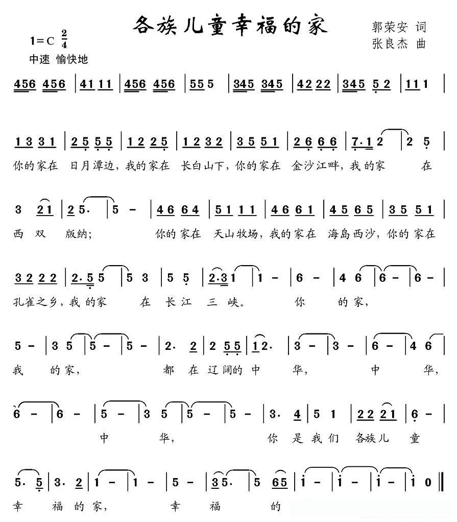 各族儿童幸福的家(郭荣安词 张良杰曲)的简谱歌词各族儿童幸福的家(郭荣安词 张良杰曲)的简谱歌词