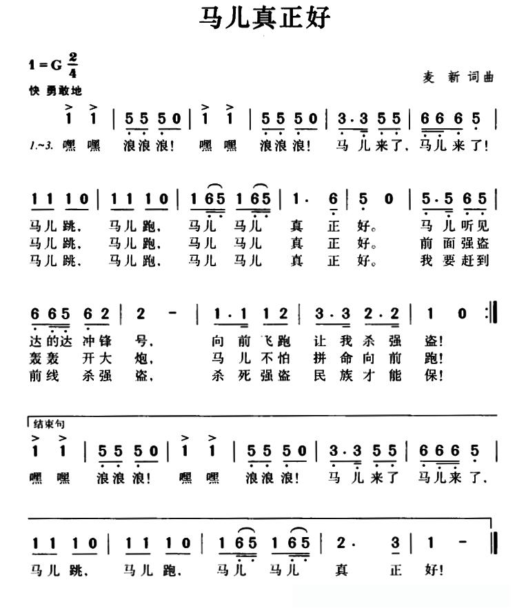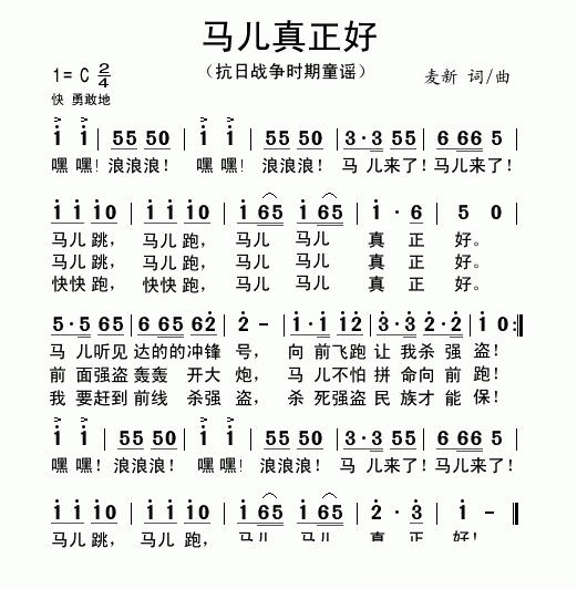 马儿真正好的简谱歌词马儿真正好的简谱歌词