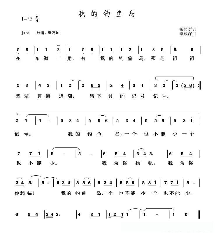 我的钓鱼岛(杨显群词 李成深曲)的简谱歌词