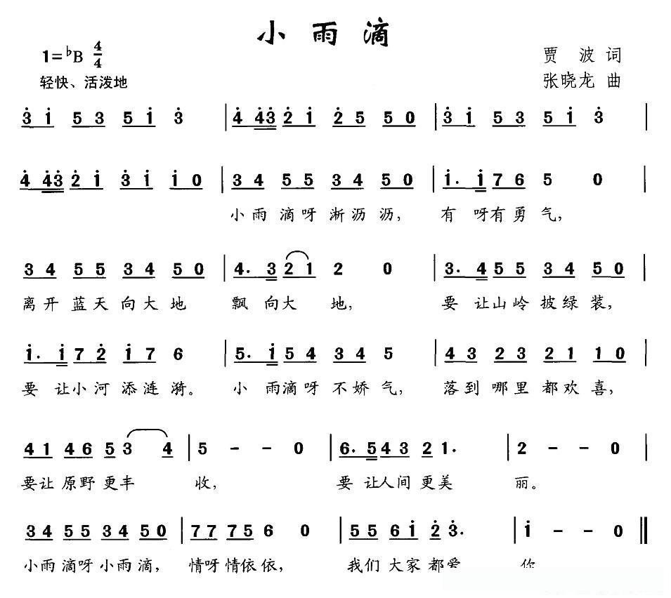 小雨滴(贾波词 张晓龙曲)的简谱歌词