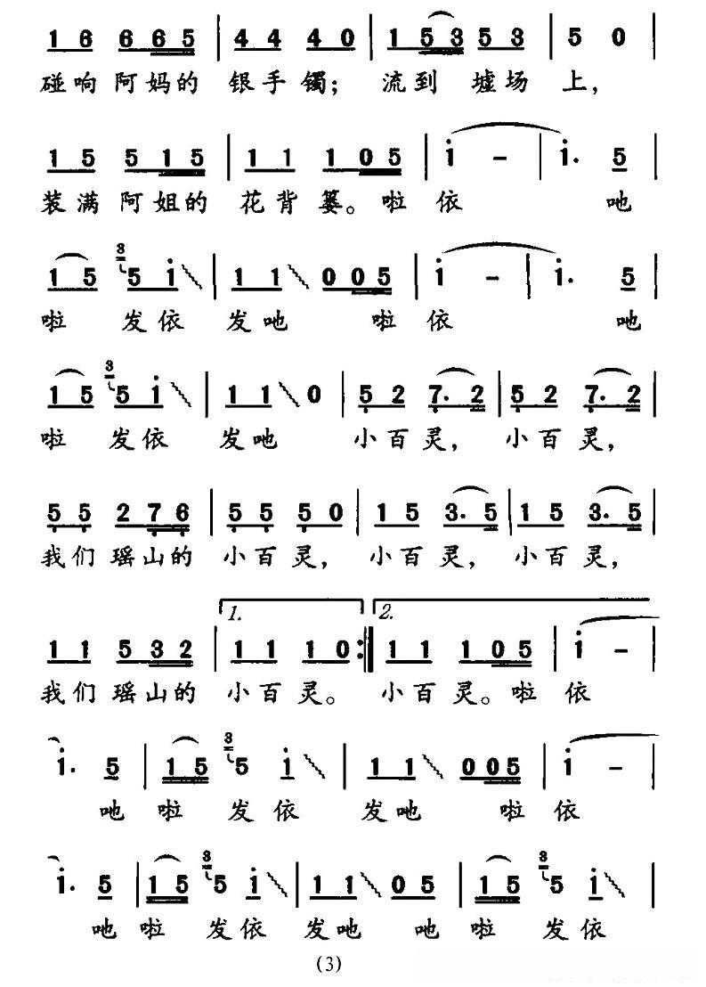 瑶家小百灵的简谱歌词