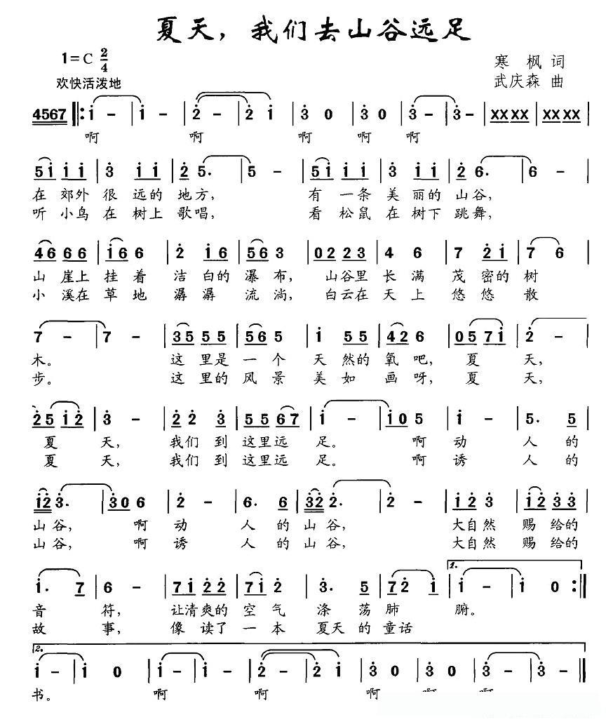 夏天,我们去山谷远足的简谱歌词