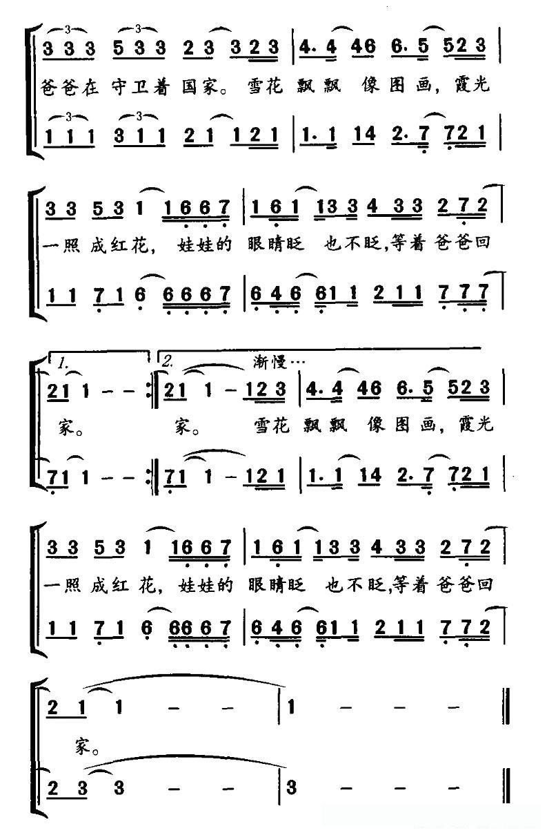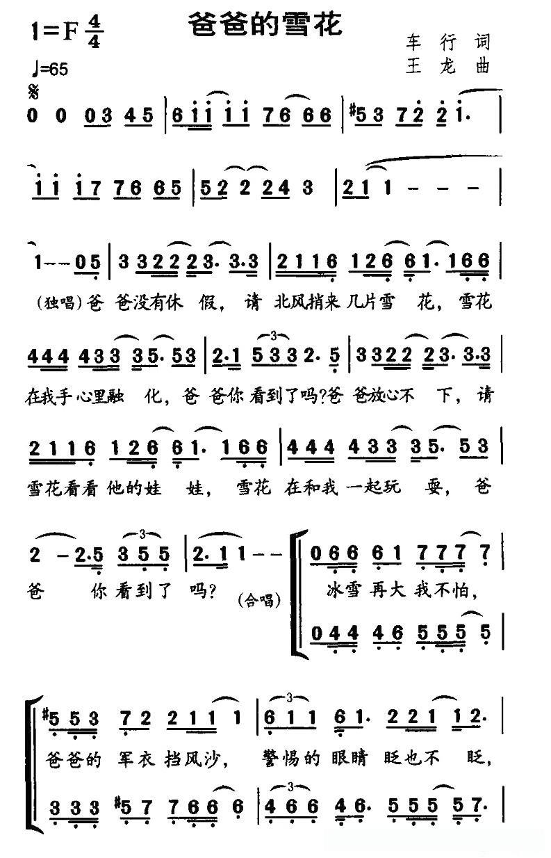 爸爸的雪花(合唱)的简谱歌词爸爸的雪花(合唱)的简谱歌词