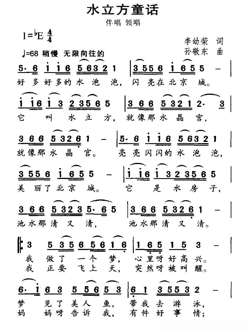 水立方童话的简谱歌词水立方童话的简谱歌词