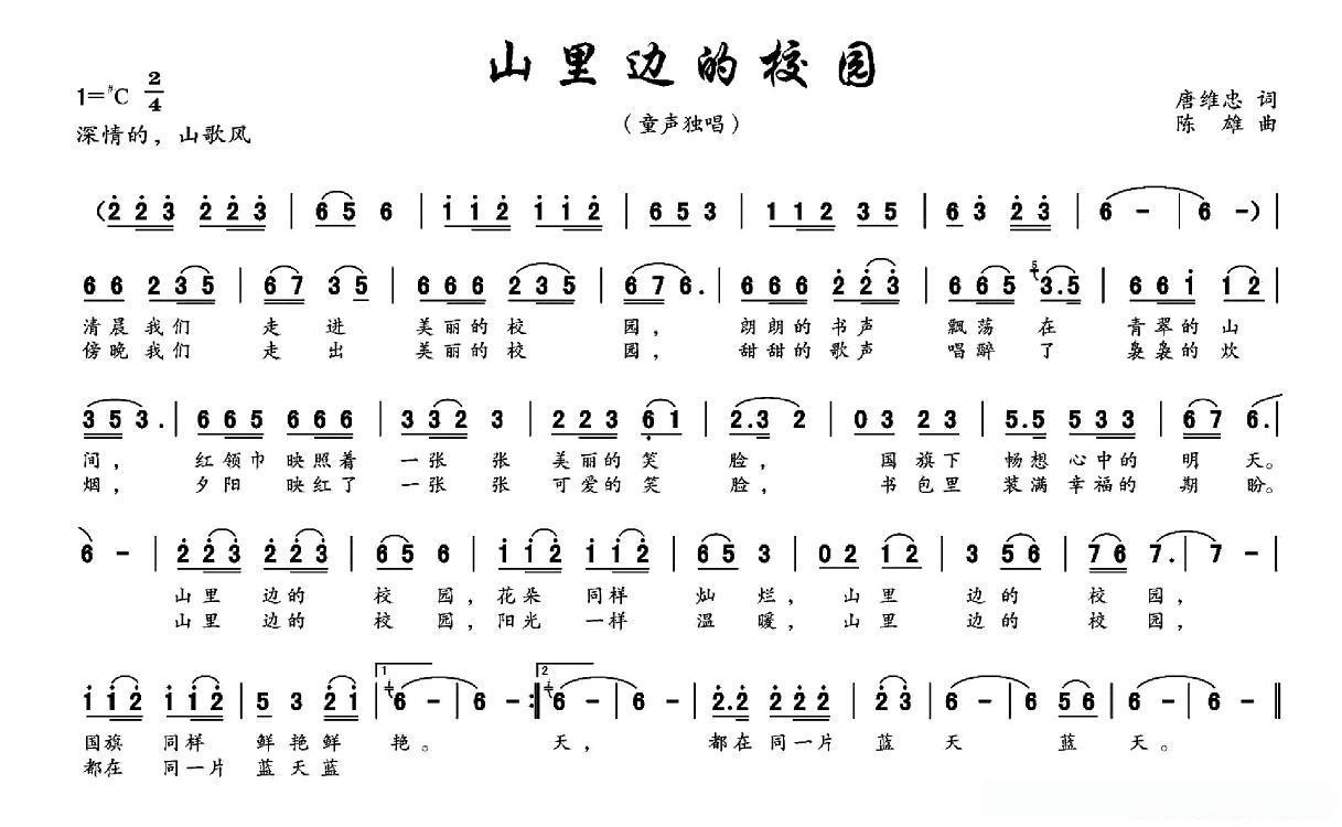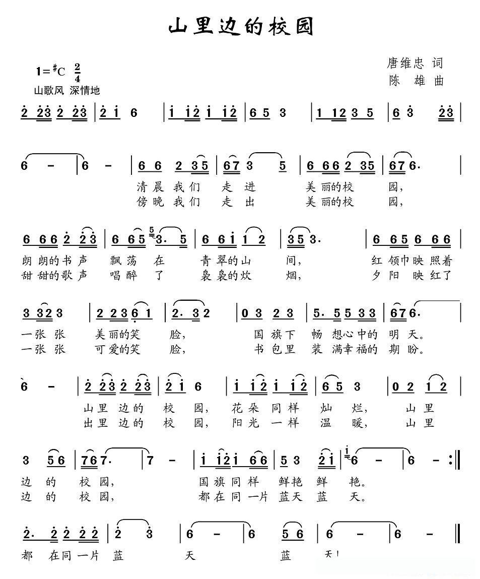 山里边的校园(唐维忠词 陈雄曲)的简谱歌词山里边的校园(唐维忠词 陈雄曲)的简谱歌词