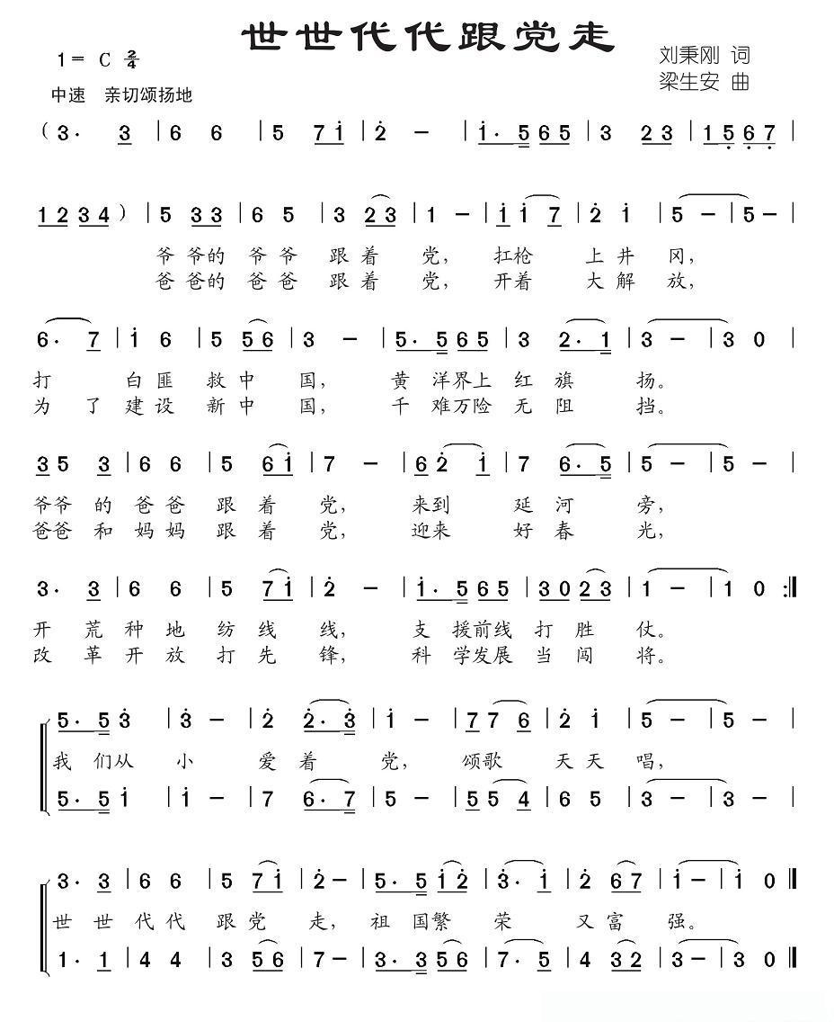 世世代代跟党走(刘秉刚词 梁生安曲)的简谱歌词