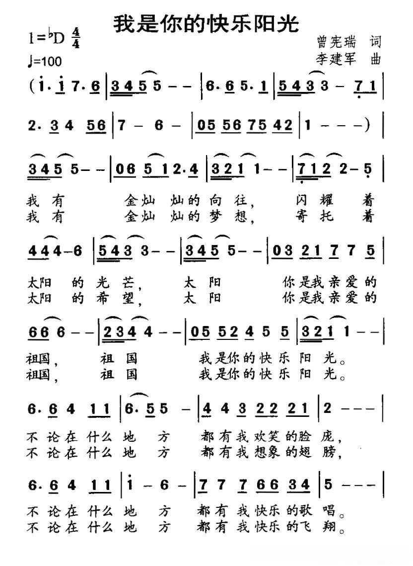 我是你的快乐阳光的简谱歌词我是你的快乐阳光的简谱歌词