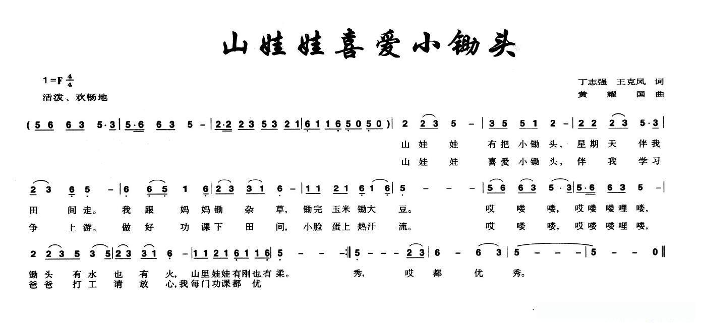 山娃娃喜爱小锄头的简谱歌词