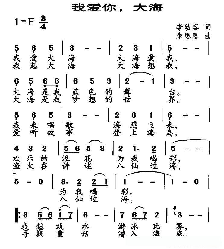 我爱你,大海(李幼容词 朱思思曲)的简谱歌词我爱你,大海(李幼容词 朱思思曲)的简谱歌词
