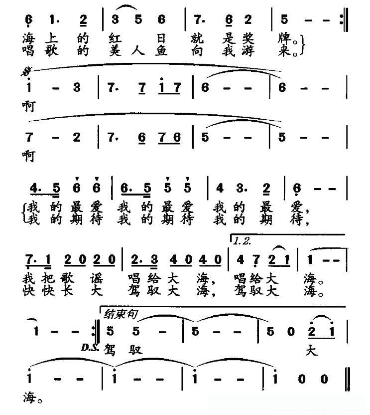 我爱你,大海(李幼容词 朱思思曲)的简谱歌词