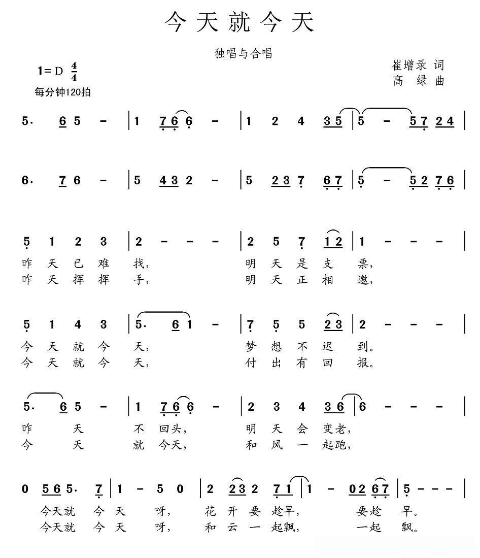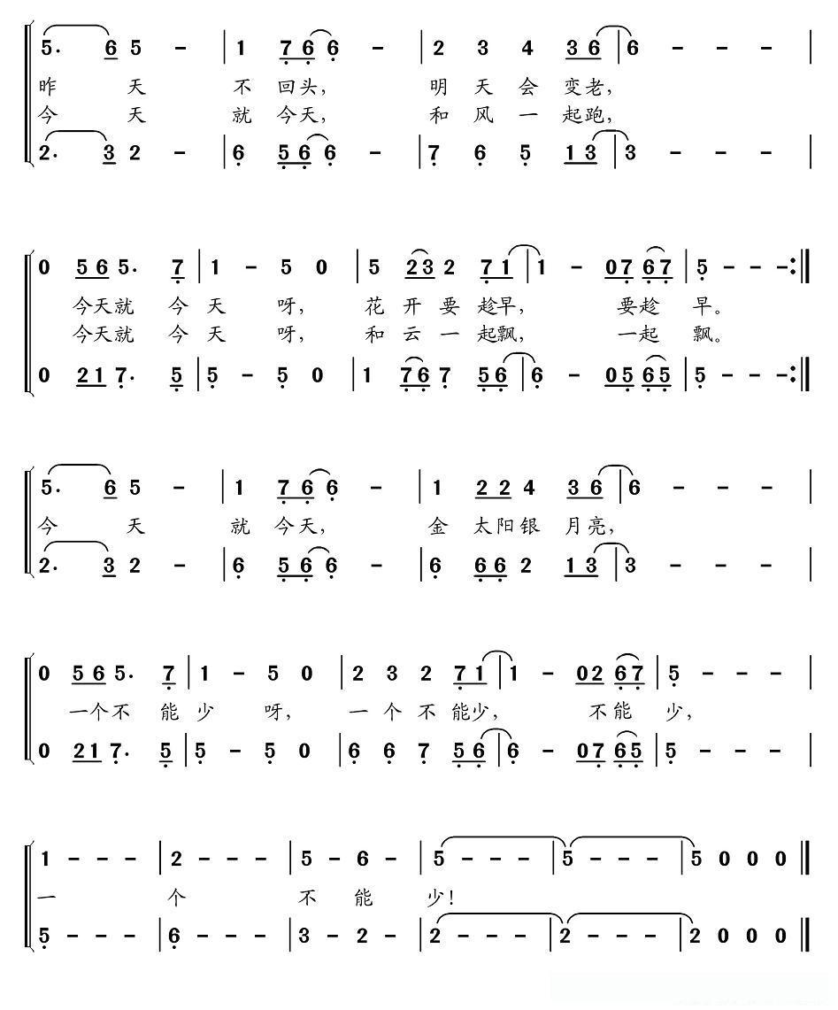今天就今天(合唱)的简谱歌词今天就今天(合唱)的简谱歌词