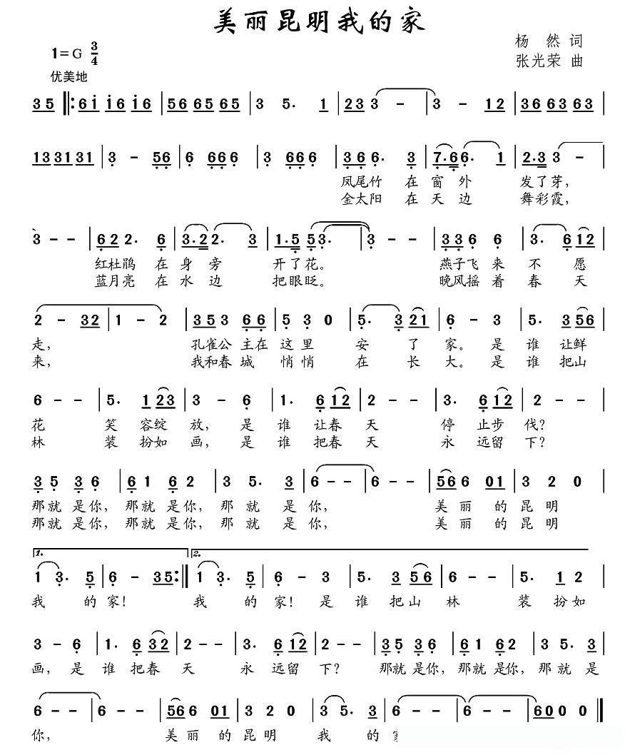 美丽昆明我的家的简谱歌词