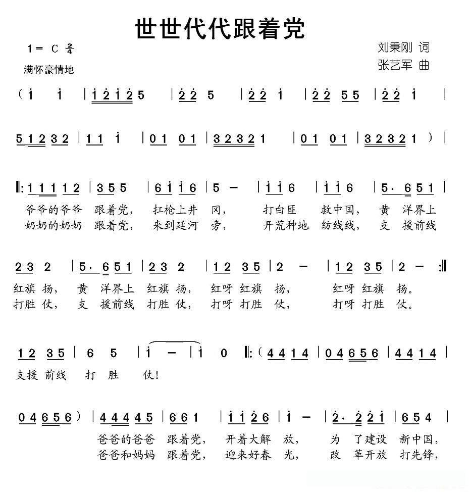 世世代代跟着党的简谱歌词世世代代跟着党的简谱歌词