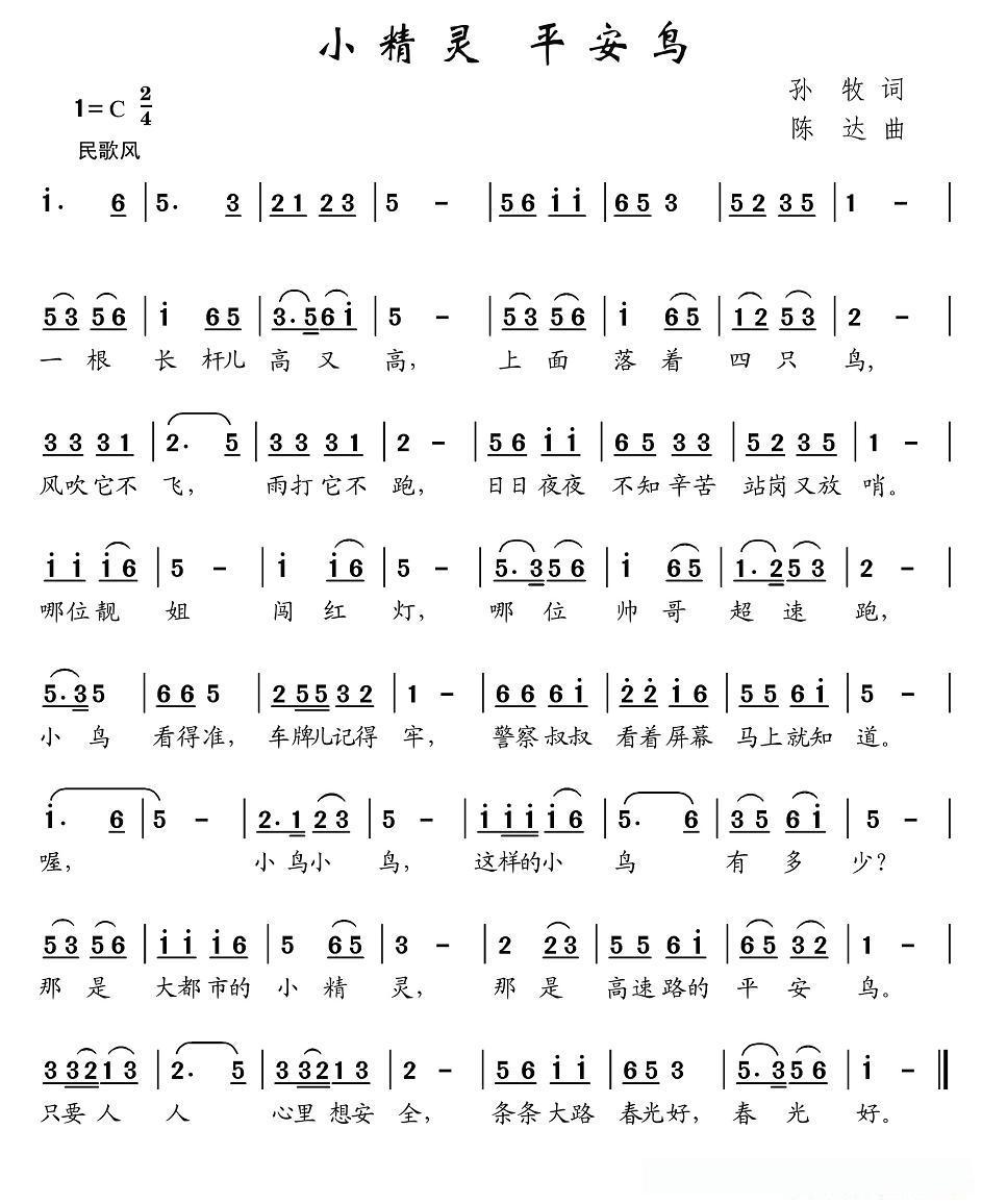 小精灵 平安鸟的简谱歌词