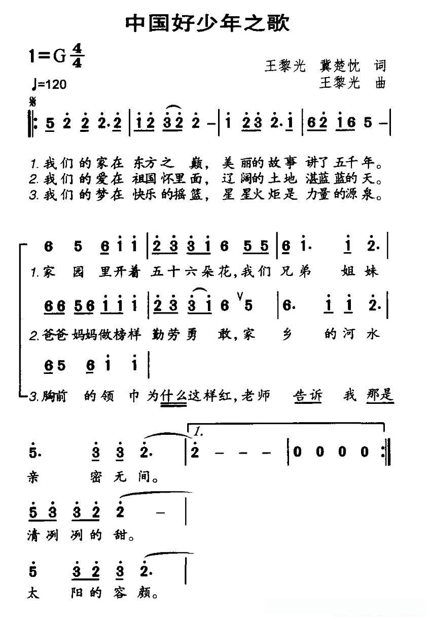 中国好少年之歌的简谱歌词中国好少年之歌的简谱歌词