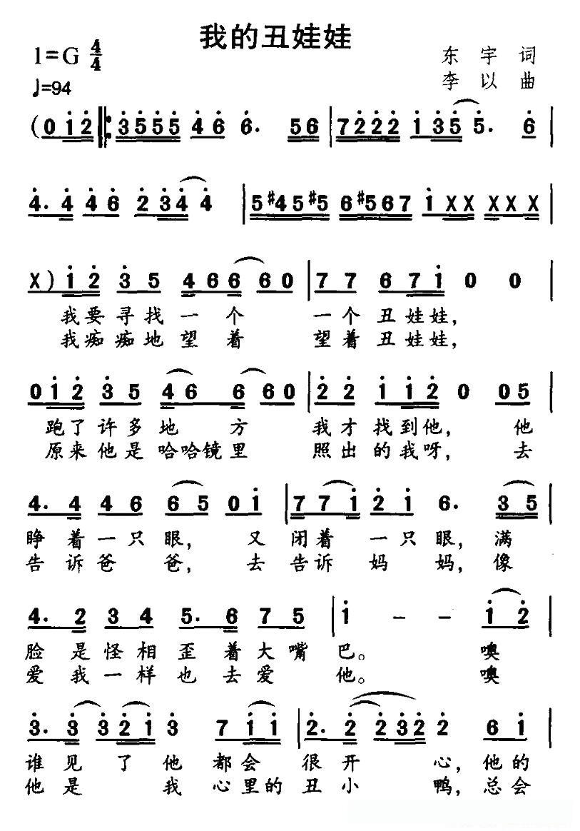 我的丑娃娃的简谱歌词我的丑娃娃的简谱歌词