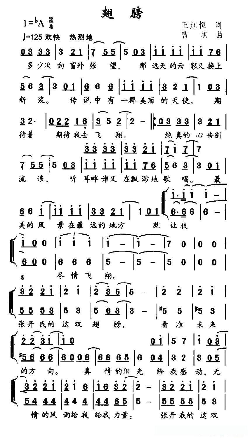 翅膀(王旭恒词 曹旭曲)的简谱歌词翅膀(王旭恒词 曹旭曲)的简谱歌词
