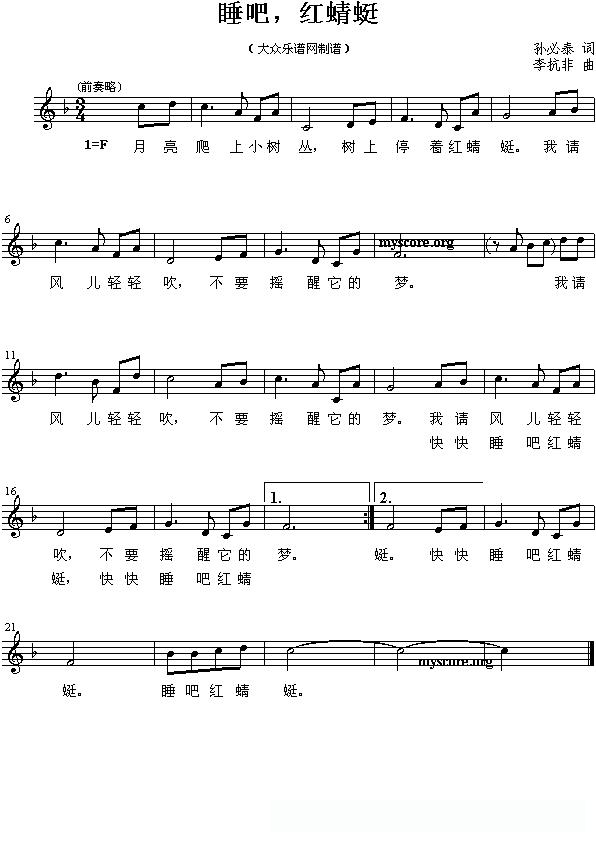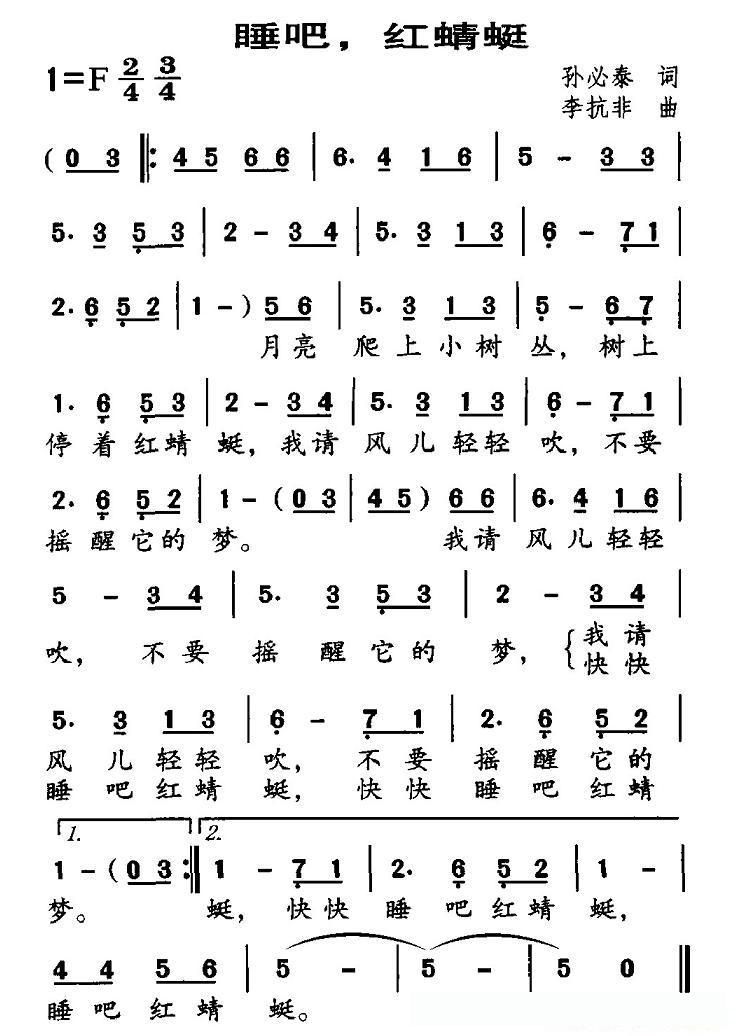 睡吧,红蜻蜓的简谱歌词睡吧,红蜻蜓的简谱歌词睡吧,红蜻蜓的简谱歌词
