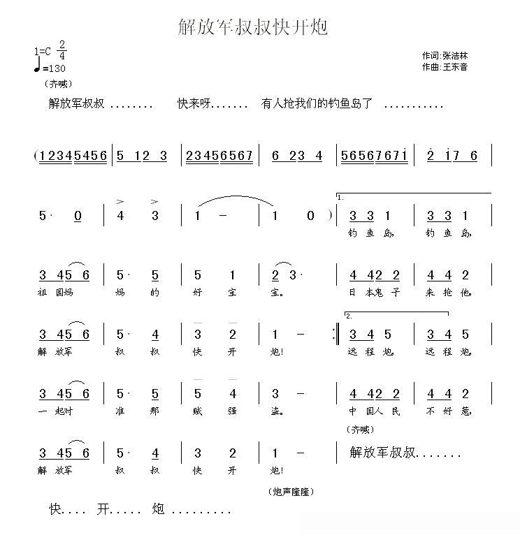 解放军叔叔快开炮的简谱歌词