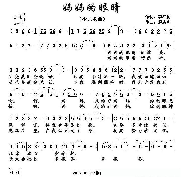 妈妈的眼睛(李江树词 廖志和曲)的简谱歌词